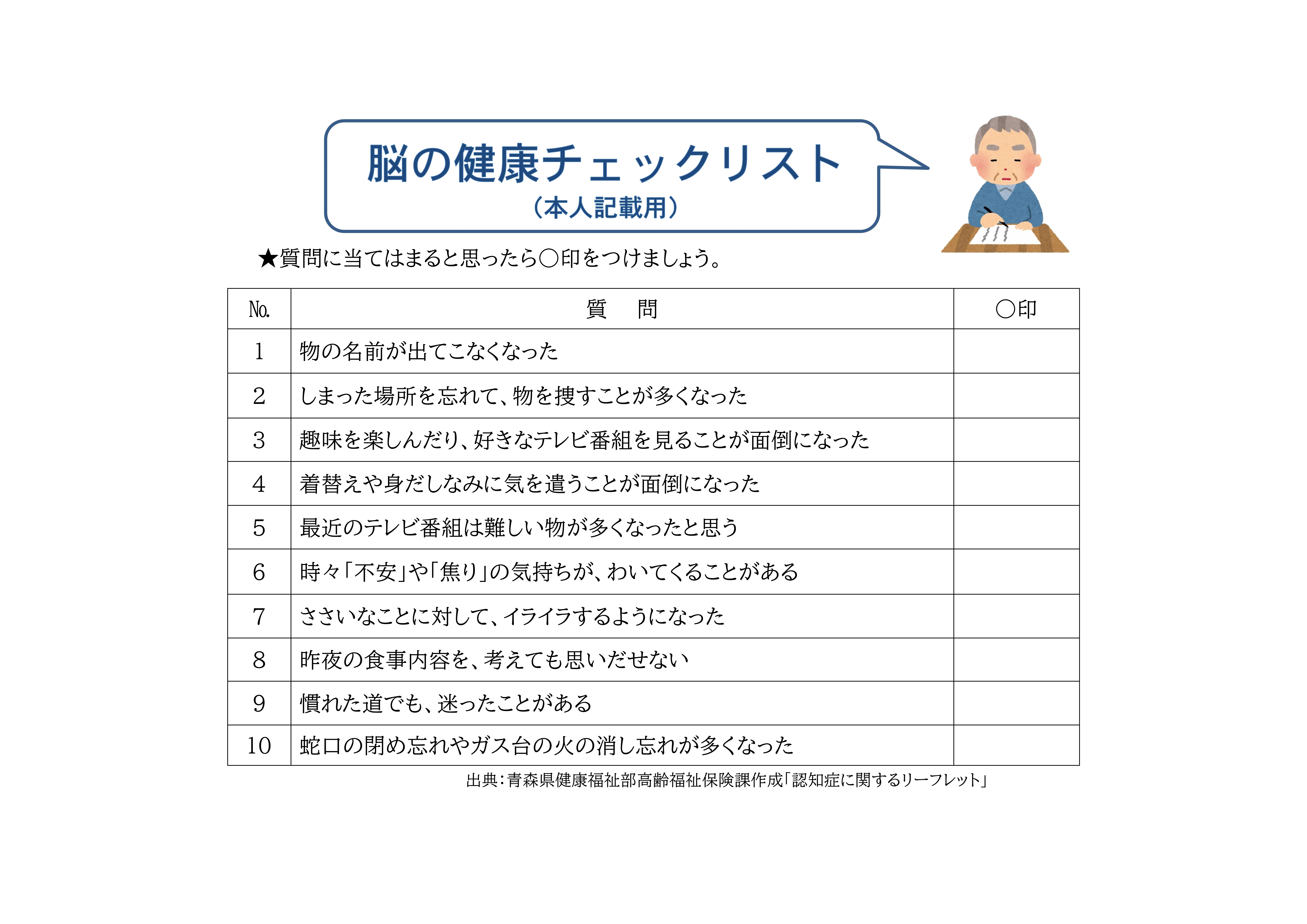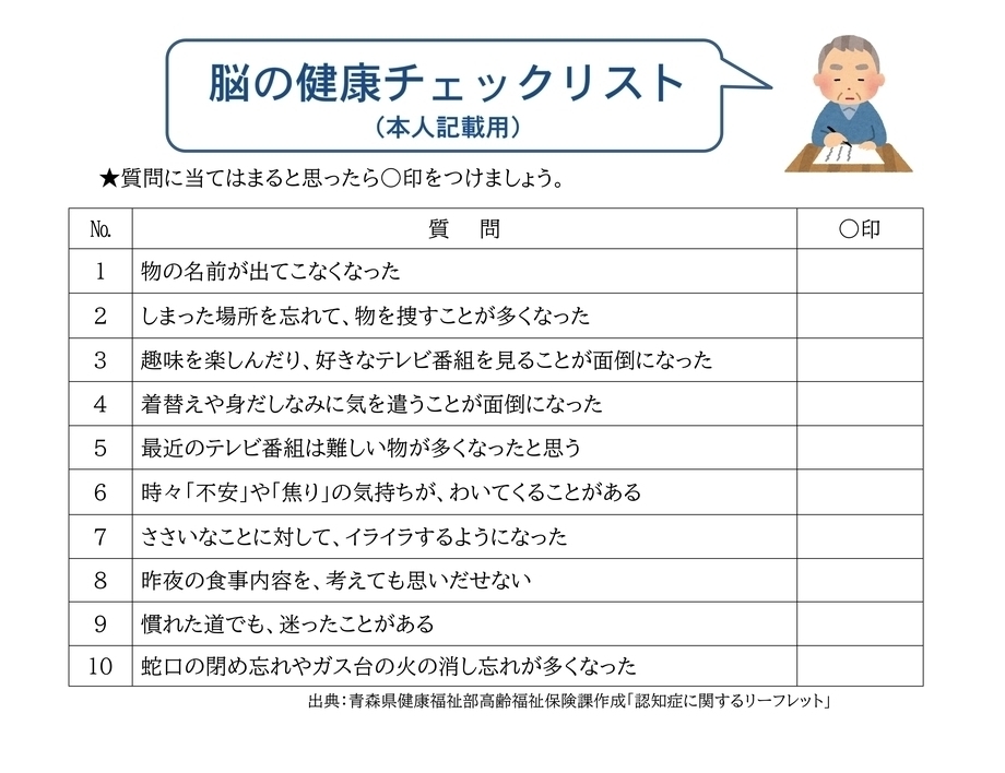 本人記載用「脳の健康チェックリスト」