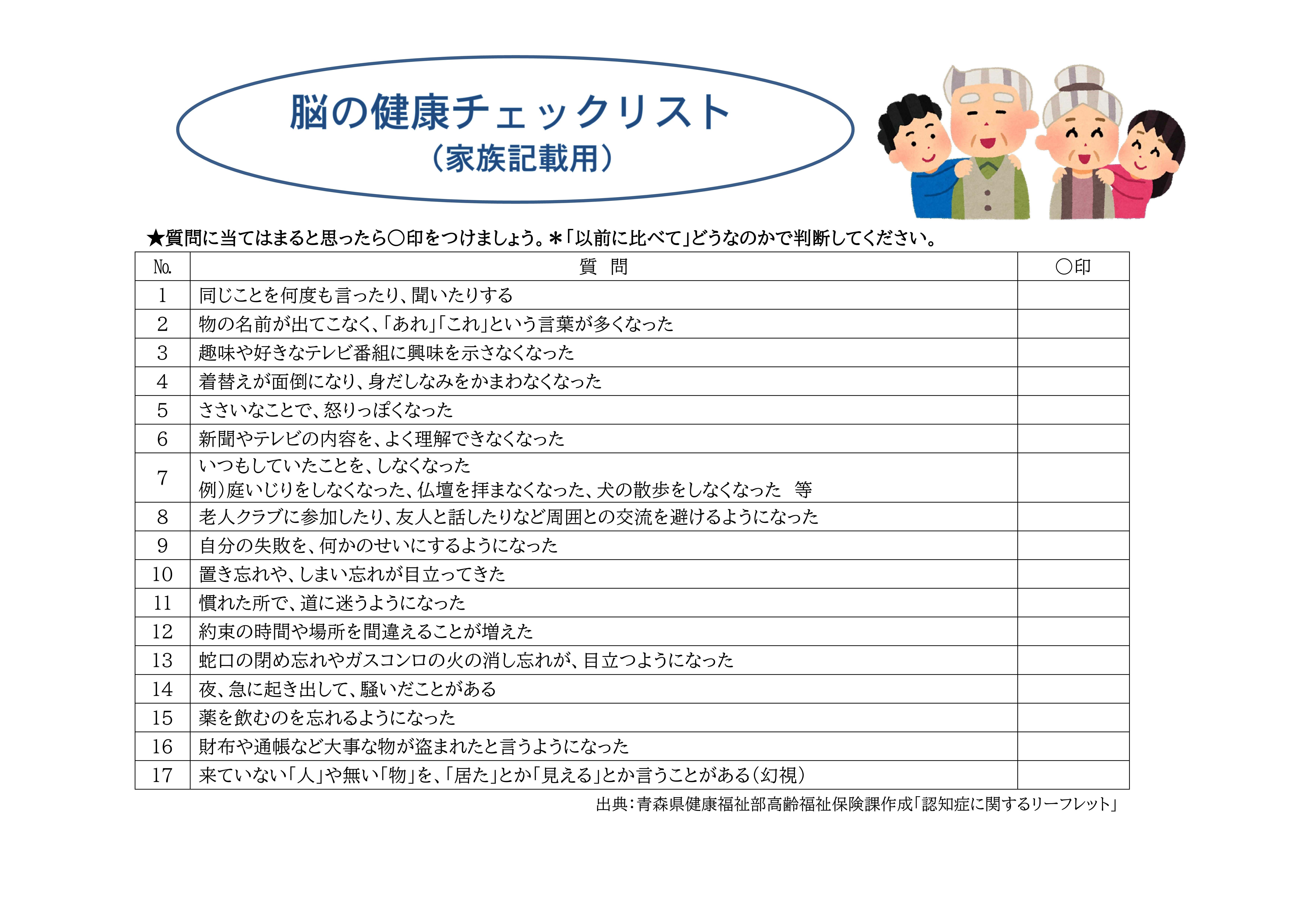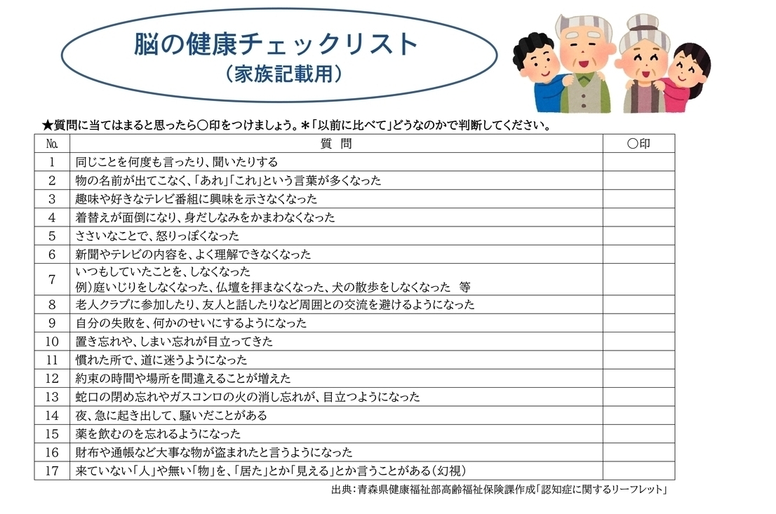 脳の健康チェックリスト(家族記載用)ダウンロード用(3392KB)